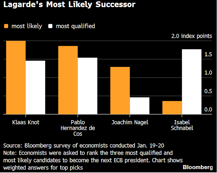 Gráfica 2.2. Candidatos más probables y mejor calificados a suceder a Christine Lagarde. Fuente: Bloomberg