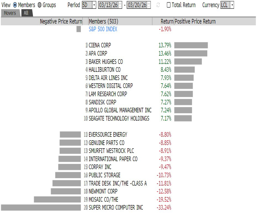El mercado petrolero ha atravesado una semana volátil iniciando el pasado lunes con un retroceso en los precios del crudo en más de 10% luego del anuncio por parte del presidente Trump de retrasar por cinco días los ataques al sector energético iraní. Sin embargo, la ausencia de señales reales de una desescalada y la continuación de las hostilidades, llevaron nuevamente al Brent a situarse sobre los 113 dólares y al WTI en torno a los 100 dólares.